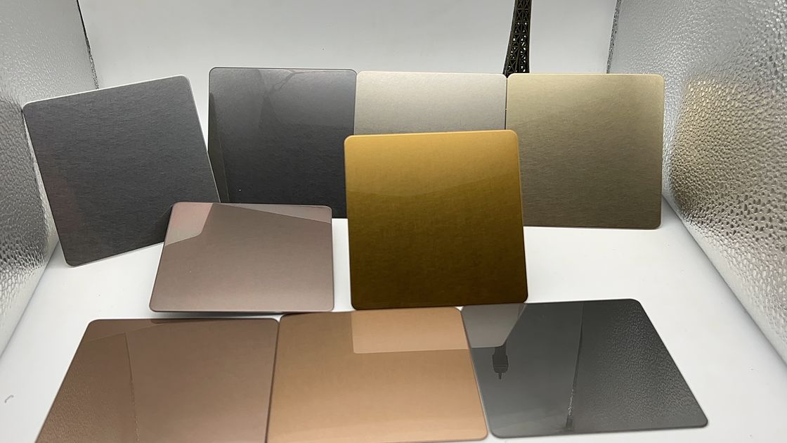 La lamiera in acciaio inossidabile PVD è disponibile in una vasta gamma di colori.Per ottenere un'ampia gamma di colori si usano variazioni di processo e di lega.