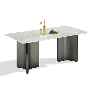 Migliora la tua esperienza culinaria con il nostro tavolo da pranzo in acciaio inossidabile color titanio, una perfetta fusione di eleganza moderna e durabilità senza pari.Prodotto con acciaio inossidabile di alta qualità e migliorato con una tecnologia avanzata di rivestimento sotto vuoto, questo tavolo vanta un rivestimento di titanio abbagliante e resistente all'usura in una gamma di colori lussuosi.mentre il solido piano da tavolo in pietra o vetro temperato garantisce stabilità e facile manutenzione.
